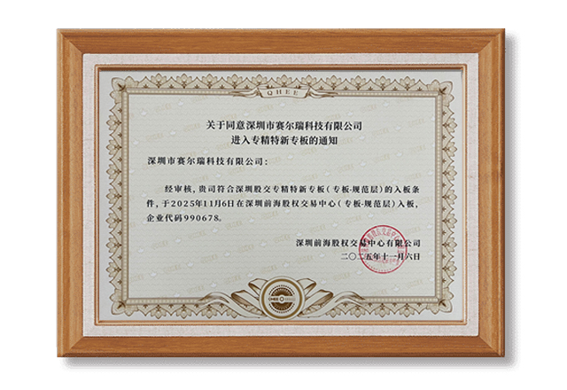 实力认证!深圳市赛尔瑞科技有限公司成功入板深圳股交专精特新专板!